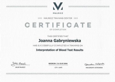 Ukończyła w 2014r 3 etapowy kurs totalnej biologii.